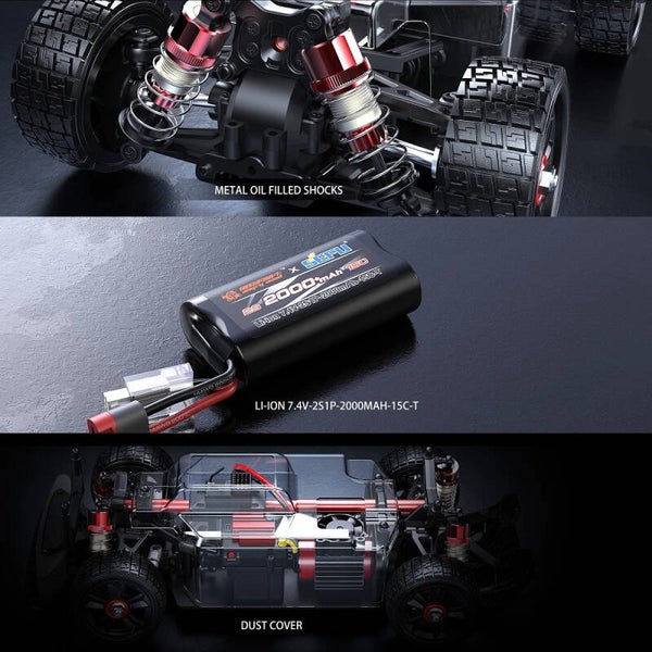 Verbeterde prestaties en duurzaamheid! Alle onderdelen zijn al in de fabriek geïnstalleerd. Je hoeft alleen een batterij aan te sluiten en je kunt naar buiten om te racen.DGeniet van een stabiele rit met de oliegevulde schokdempers en antislip rubberen banden, inclusief twee reservesets wielen/banden. Dit alles maakt de MJX Hyper Go perfect voor zowel beginners als ervaren RC-enthousiastelingen.