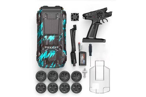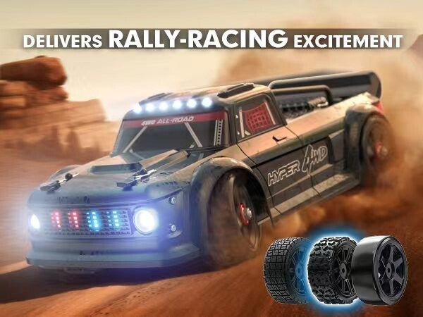 Ben jij op zoek naar de ultieme RC car ervaring? Dan is de MJX Hyper Go 14301 precies wat je nodig hebt! Met een topsnelheid van 45 km/u met de meegeleverde 2S accu en zelfs tot 65 km/u met een optionele los verkrijgbare 3S accu, zul je ongetwijfeld de snelste op de baan zijn. Met de verbluffende LED-verlichting, een krachtige borstelloze motor en 4WD-aandrijfsysteem is deze RC car een echte topper. Je krijgt zelfs twee reservesets wielen/banden meegeleverd!