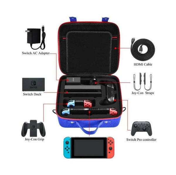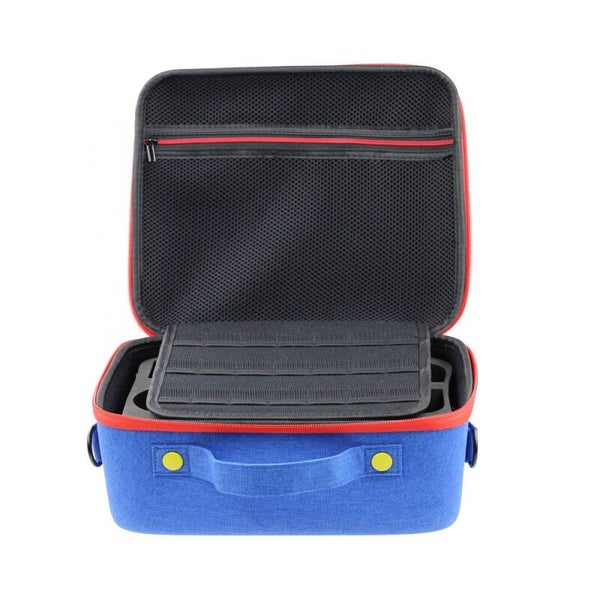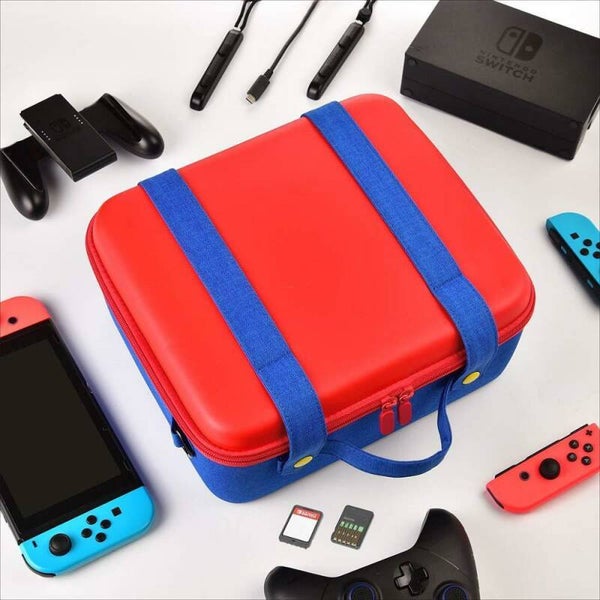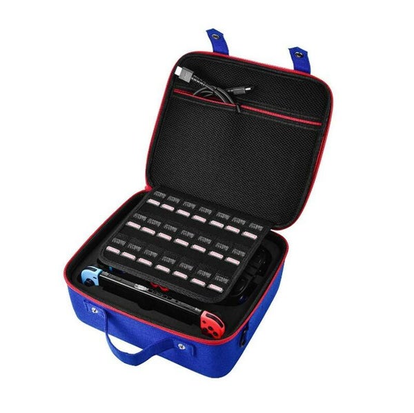 Deze stevige en veilige opberghoes is speciaal ontwikkeld voor de Nintendo Switch, de binnenkant is van EVA schuim gemaakt wat ervoor zorgt dat alles er optimaal in past. Deze case biedt niet alleen ruimte voor de Switch console, maar ook voor je docking station, AC adapter, kabels en de Joy-Con grip of Pro controller. Met de rits sluit je ‘m makkelijk en snel af en voorkom je dat er stof of ander vuil bijkomt. Naast opbergvakken voor 21 game cartridges of SD kaarten is er ook speciaal ruimte gemaakt voor je oordopjes en andere kleine accessoires, ideaal toch?.