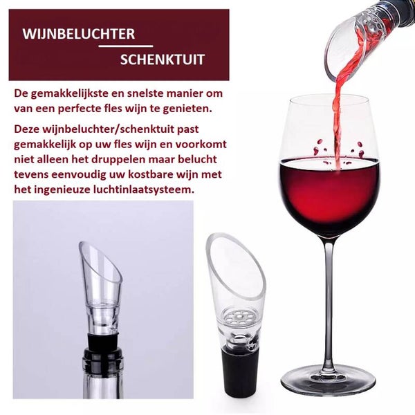 Met de bijgeleverde wijnschenker, mors je geen wijn aan de diner tafel.