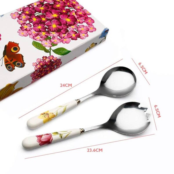 Deze slabestek set van LivingHub brengt de zomer bij u op tafel met zijn frisse en tijdloze bloemenmotief! Het saladebestek bestaat uit een lepel en een vork, wordt gemaakt van hoogwaardig RVS-materiaal en heeft porseleinen handvaten. Het geheel wordt geleverd in een mooie geschenk doos.