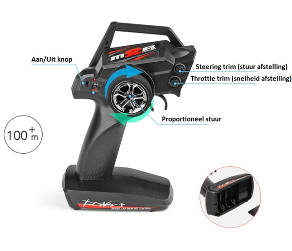- Zender: 2,4 GHz (reikwijdte 80-100 meter)