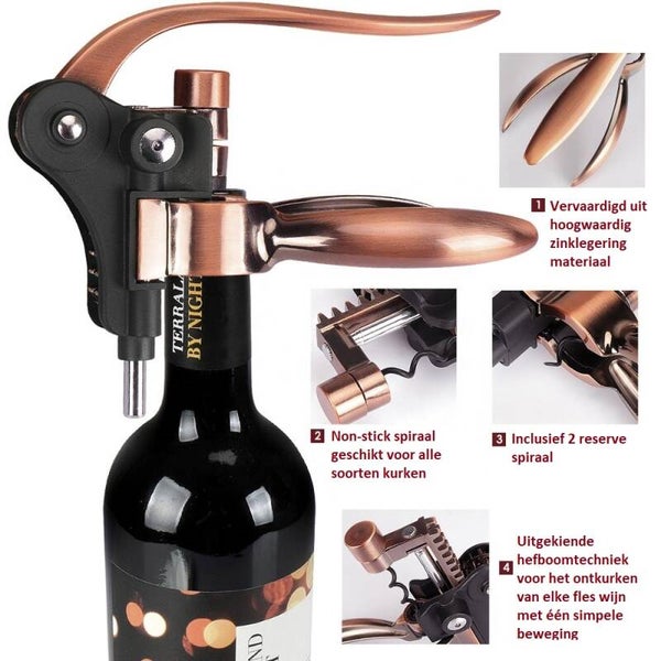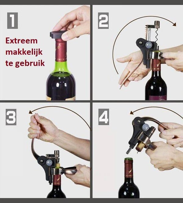 De ergonomische handgreep van de kurkentrekker zorgt voor betere grip en dankzij de uitgekiende hefboomtechniek ontkurk je elke fles met één simpele beweging. Nooit meer onhandig geklungel, door een te vaste of kapotte kurk. De kurkentrekker van LivingHub is gemaakt van hoogwaardig zinklegering materiaal en wordt geleverd in een luxe geschenkdoos.