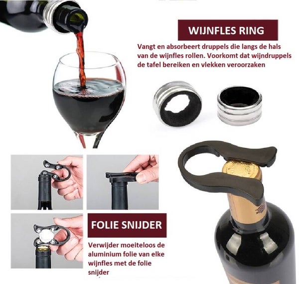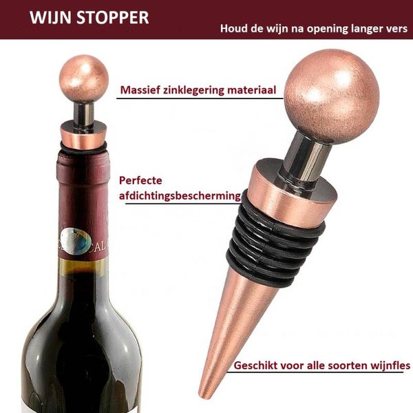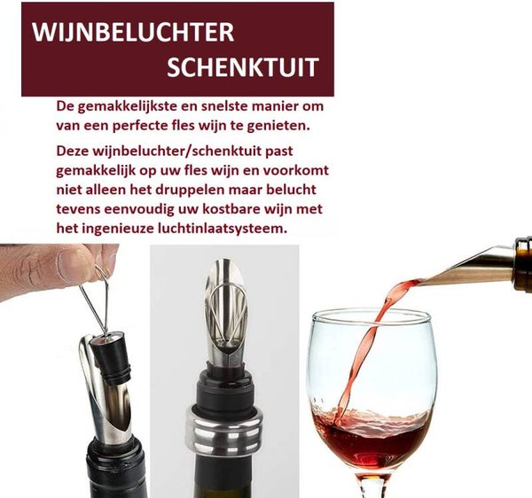 Met de bijgeleverde wijnschenker, mors je geen wijn aan de diner tafel. Tevens zijn 2 wijnstoppers aan de luxe gift-set toegevoegd. Deze draagt bij aan het behoud van smaakkwaliteit van uw kostbare wijn.