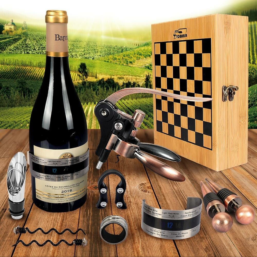 Luxe Kurkentrekker en Wijnaccessoires Set 9 in 1 - Inclusief Schaakset - Schaakbord Geschenkdoos