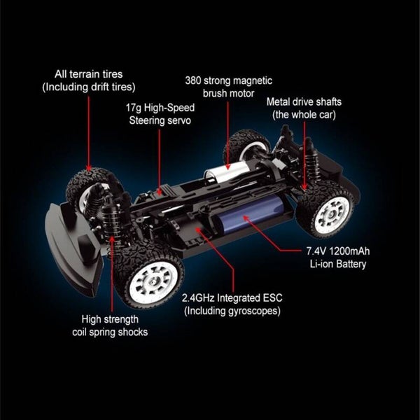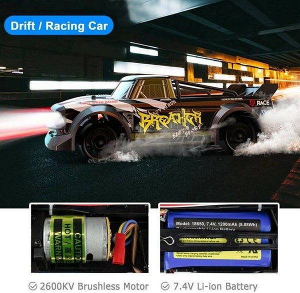 De UdiRC Breaker is een vierwiel aangedreven model en kan gebruikt worden als gewone straat auto en drift auto. Twee wielen set, race en drift worden standaard geleverd in dit Ready To Run pakket. Uniek aan deze RC auto is dat het uitgerust is met ESP. Dit systeem zorgt ervoor dat de auto ten allertijd onder controlle blijft, zelfs in meest extreme drift manoeuvres. Vermogen wordt omgezet in voorwaartse bewegingen, precies wat je wilt!