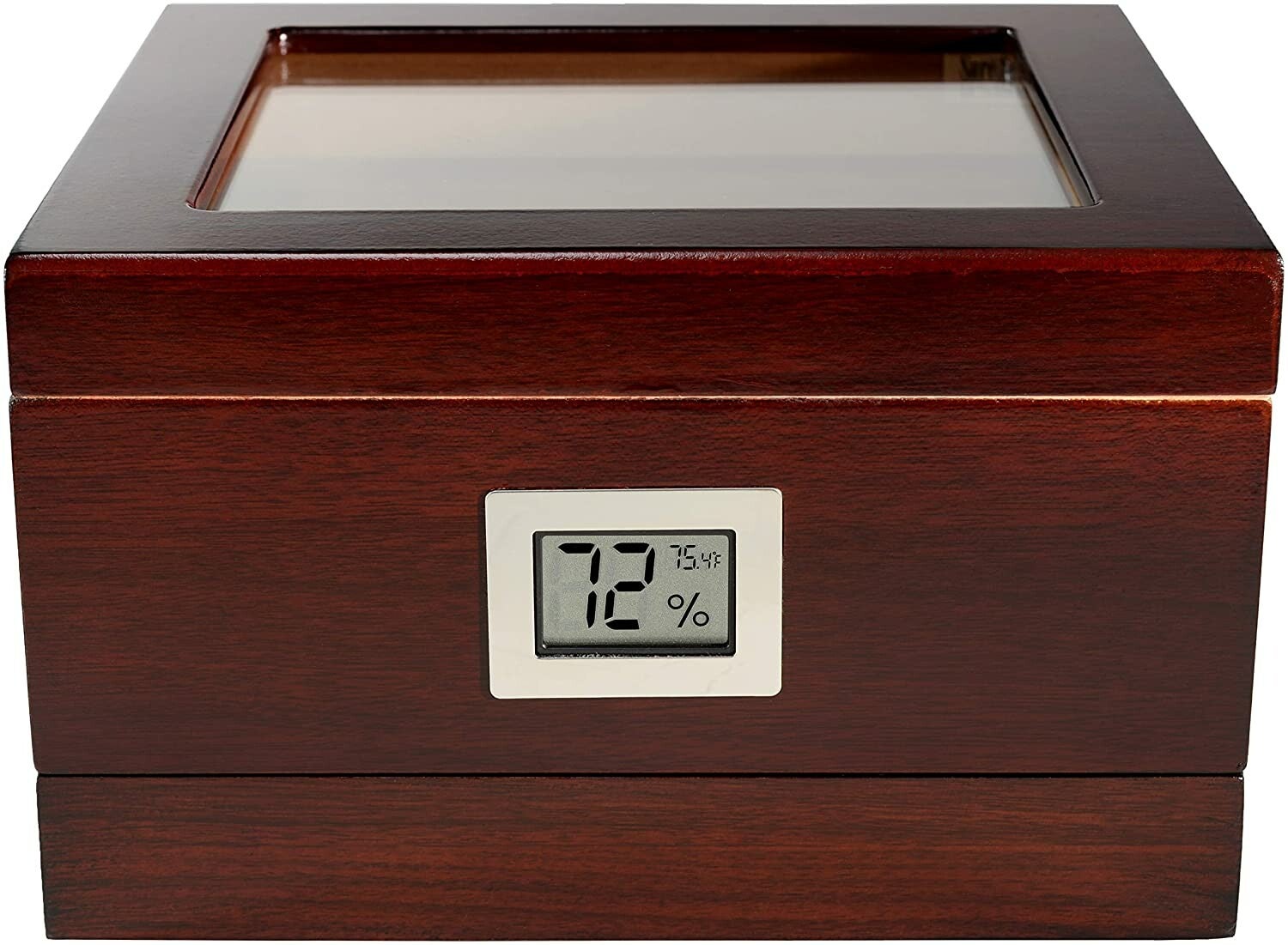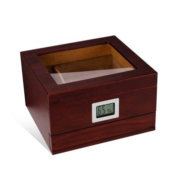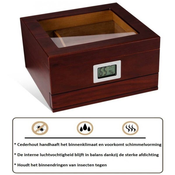 Het venster zorgt ervoor dat je altijd zicht houdt op jouw sigaren. Aan de buitenzijde is een digitale hygrometer geplaatst zodat je gemakkelijk de luchtvochtigheid kan meten zonder de deksel te moeten openen.