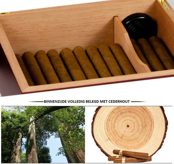 Als je een sigarenroker bent, weet je vast dat het van groot belang is om je sigaren in een ‘humidor’ te bewaren. Een humidor is en klimaat-controlerende box die de luchtvochtigheid regelt, zodat je sigaren goed blijven. Sigaren hebben namelijk een bepaalde luchtvochtigheid nodig om ervoor te zorgen dat ze goed branden en zo goed mogelijk smaken. Het hebben van een humidor is dus een must! Deze cadeau set wordt helemaal compleet geleverd met een sigaren etui, sigaren knipper en luxe asbak. Premium kwaliteit voor een prachtige prijs!